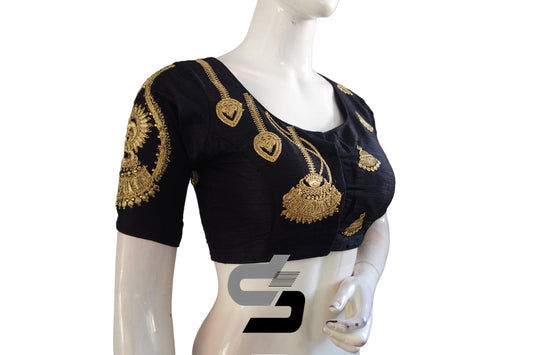 Black High Neck Designer Embroidered Saree Blouses: Elevated Vibrant Style