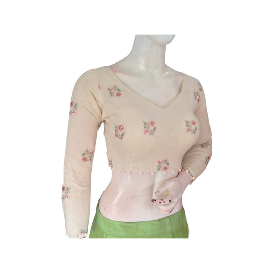 "Peach Perfection: Designer Jute Embroidery Readymade Saree Blouses"