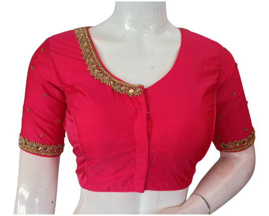 Bridal Peach Pink Silk Blouse: Mirror Aari Embellished Masterpiece