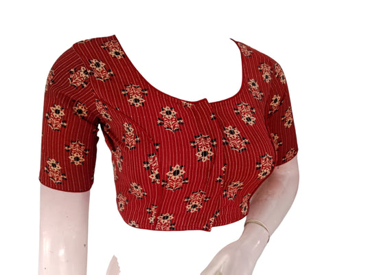 Burgundy Cotton Readymade Saree Blouse: A Rich Elegance
