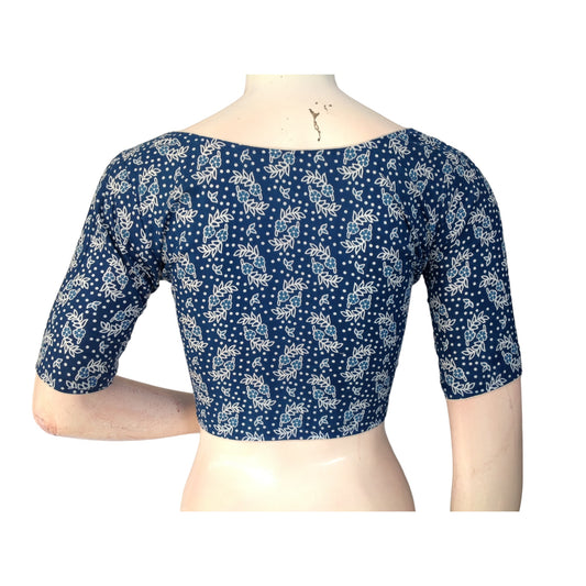 Celestial Hues: Blue Cotton High Neck Blouse for Sarees
