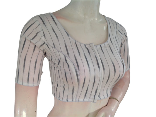 A Versatile Classic : Cream Cotton Readymade Saree Blouse