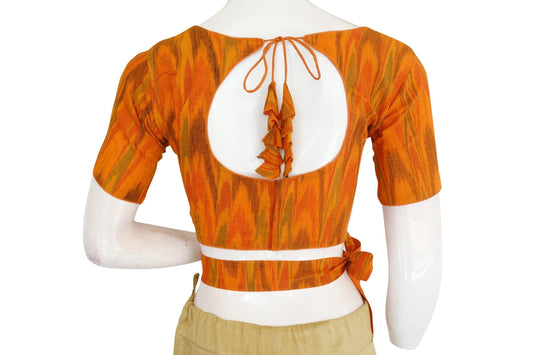 Comfortable Summer Style Mustard color Ajrakh Cotton Readymade Saree Blouse