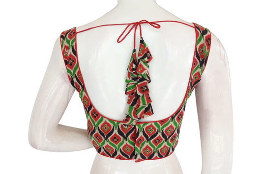 Elegant Kalamkari Boat Neck Saree Blouse, Ready-to-Wear
