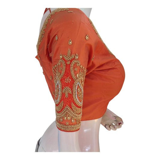 Elegant Terracotta Aari Handwork Wedding Silk Saree Readymade Blouse
