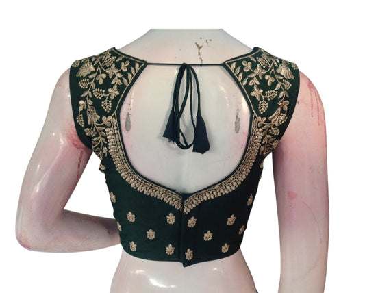 Enchanting Emerald: Dark Green Embroidered Partywear Readymade Blouses