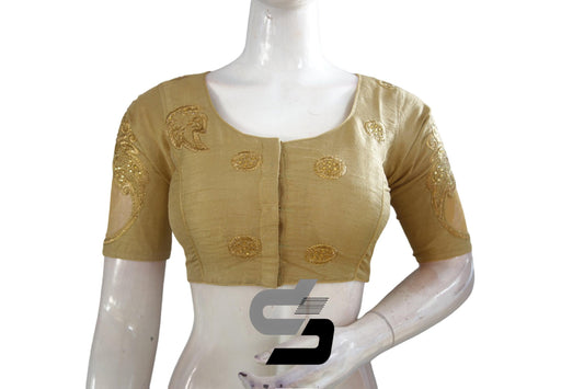 Gold Saree Blouse,3/4th Indian Readymade Blouses, Netted sleeves Choli top