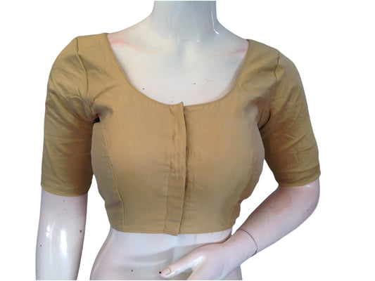 Gold Silk Cotton Plain Readymade Saree Blouse - Indian Fashion