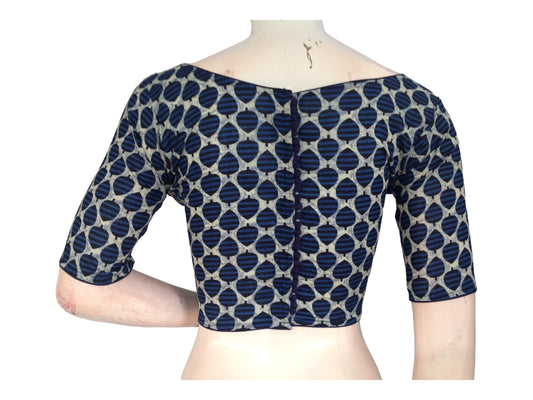 Jute Cotton Hand Blocked Indian Readymade Designer Blouse