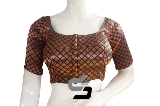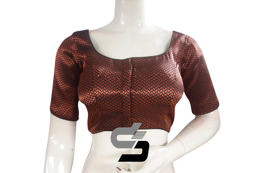 Black And Copper Mixed Brocade Silk Readymade Saree Blouse