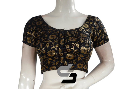 Black Color Brocade Readymade Saree Blouse With Matching Mask