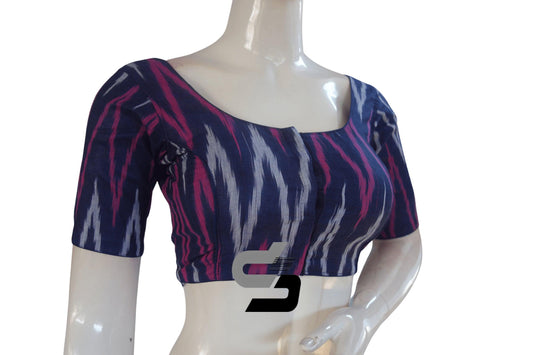 Chic Navy Blue Ikkat Cotton Readymade Blouse, Elevate Your Look!