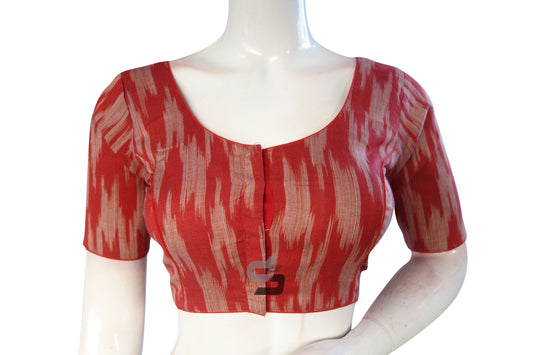Red Color Ikkat Cotton Readymade Saree Blouse