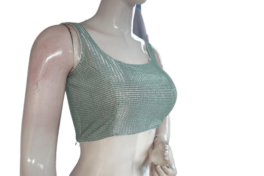 Pastel Green And Silver Mixed color Designer Readymade Saree Blouse