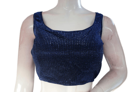 Navy Blue And Silver Mixed color Designer Readymade Saree Blouse