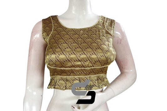 Gold Color Sleeveless Brocade Designer Party Wear Readymade Blouse/ Indian Crop Tops