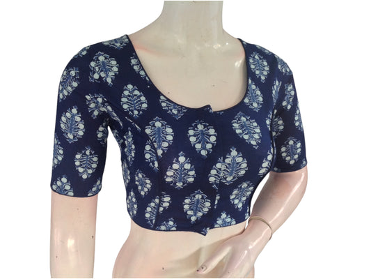Radiance: Blue Color Cotton Printed Readymade Saree Blouse
