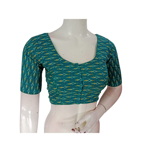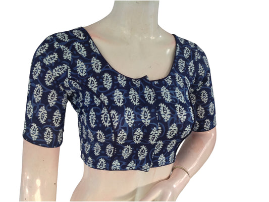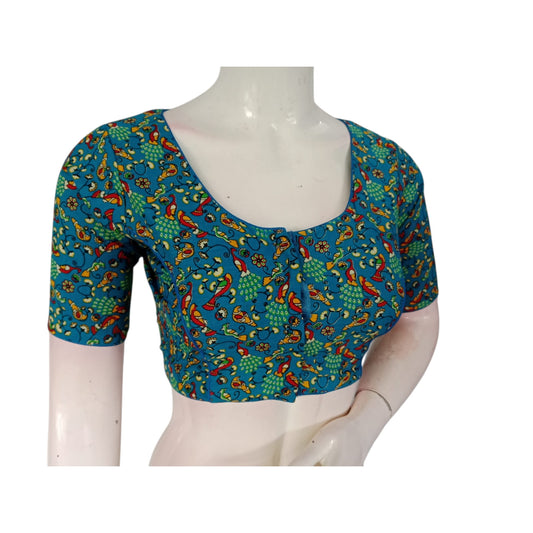 Cool & Calming: Teal Blue Color Cotton Printed Readymade Saree Blouse