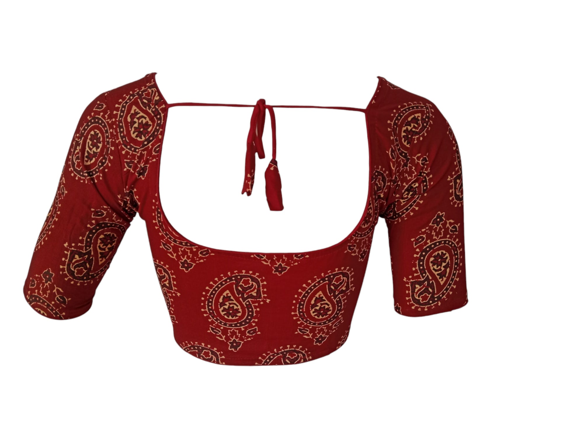 Elevate your saree ensemble with this rich burgundy cotton readymade saree blouse. Crafted from soft, breathable fabric, this blouse offers both comfort and style. The classic design and versatile color make it a perfect match for any saree.