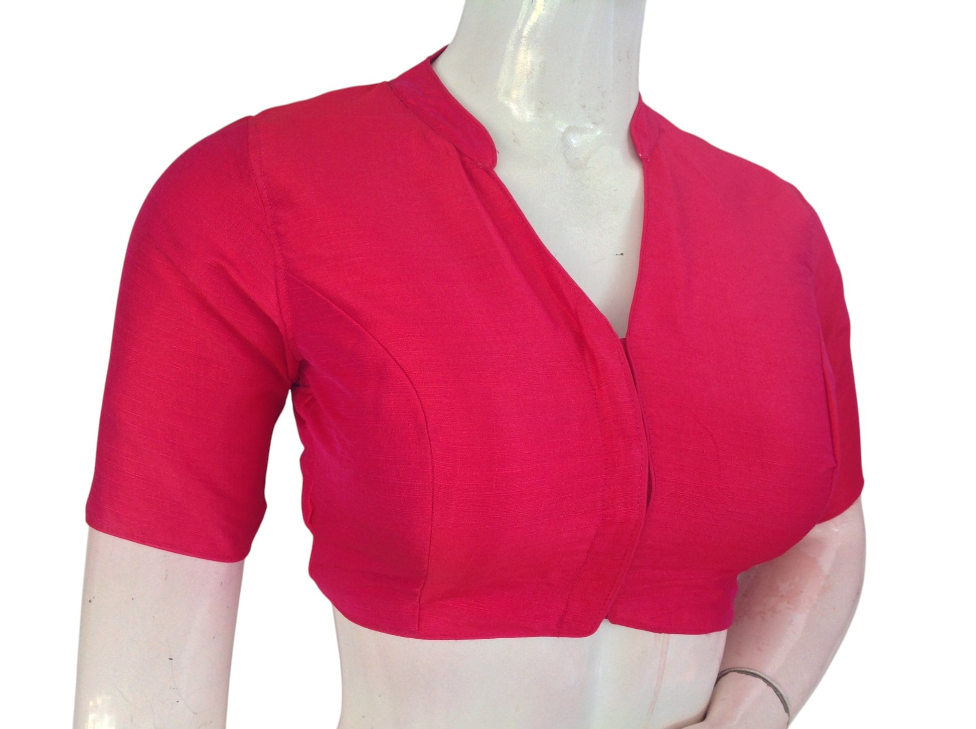 Pink Semi Raw Silk Saree Blouse β Collar Neck, Stitched & Ready to Wear with Cotton Lining