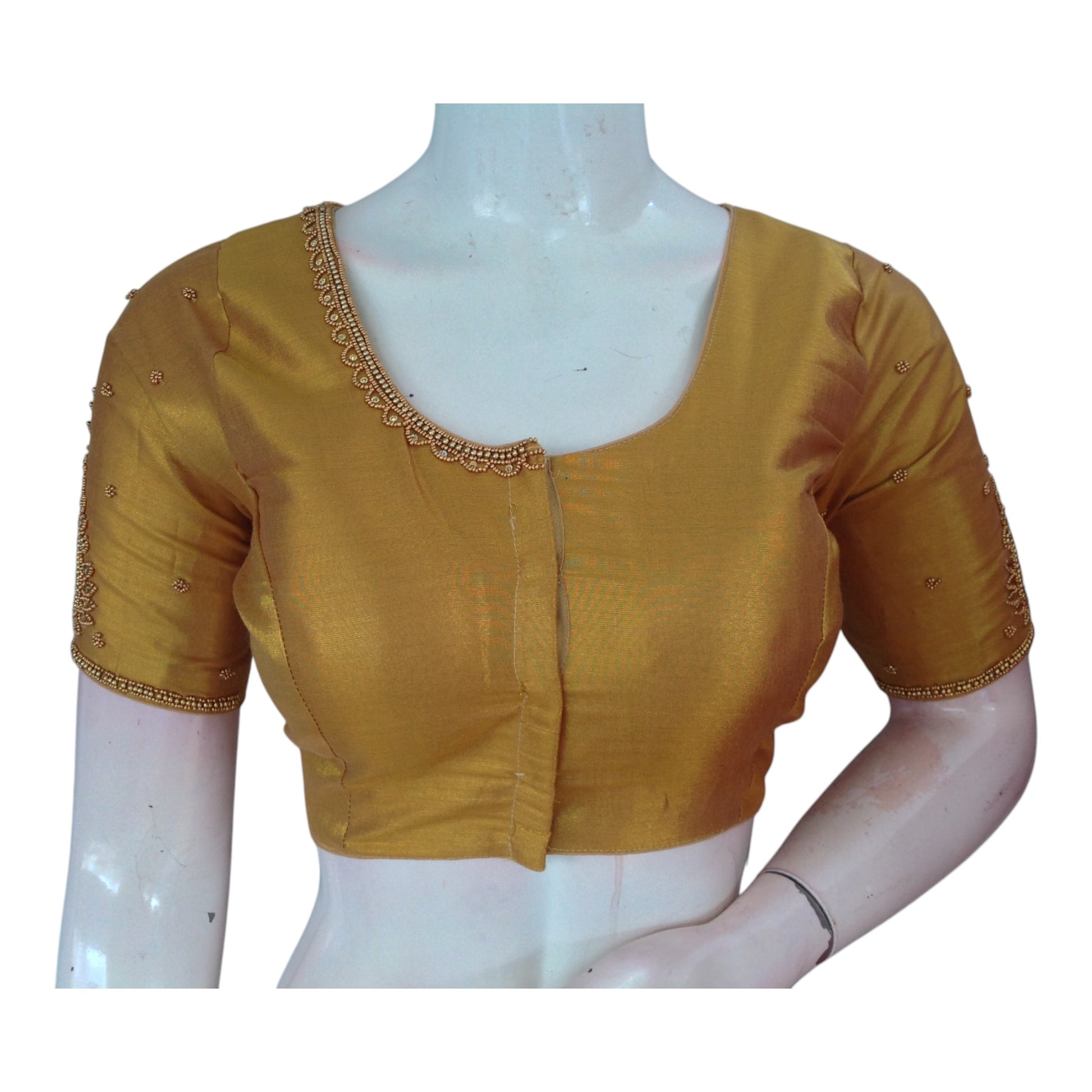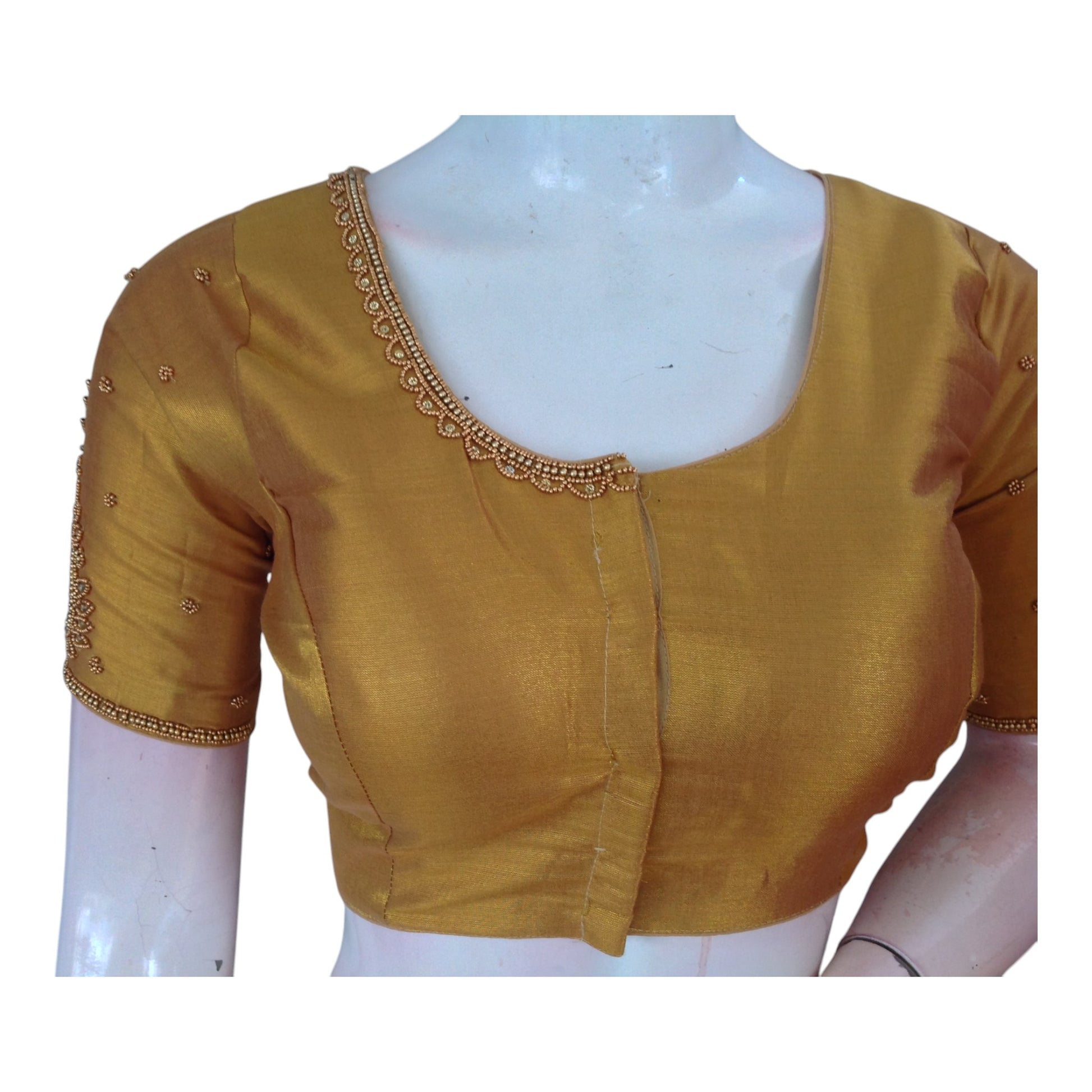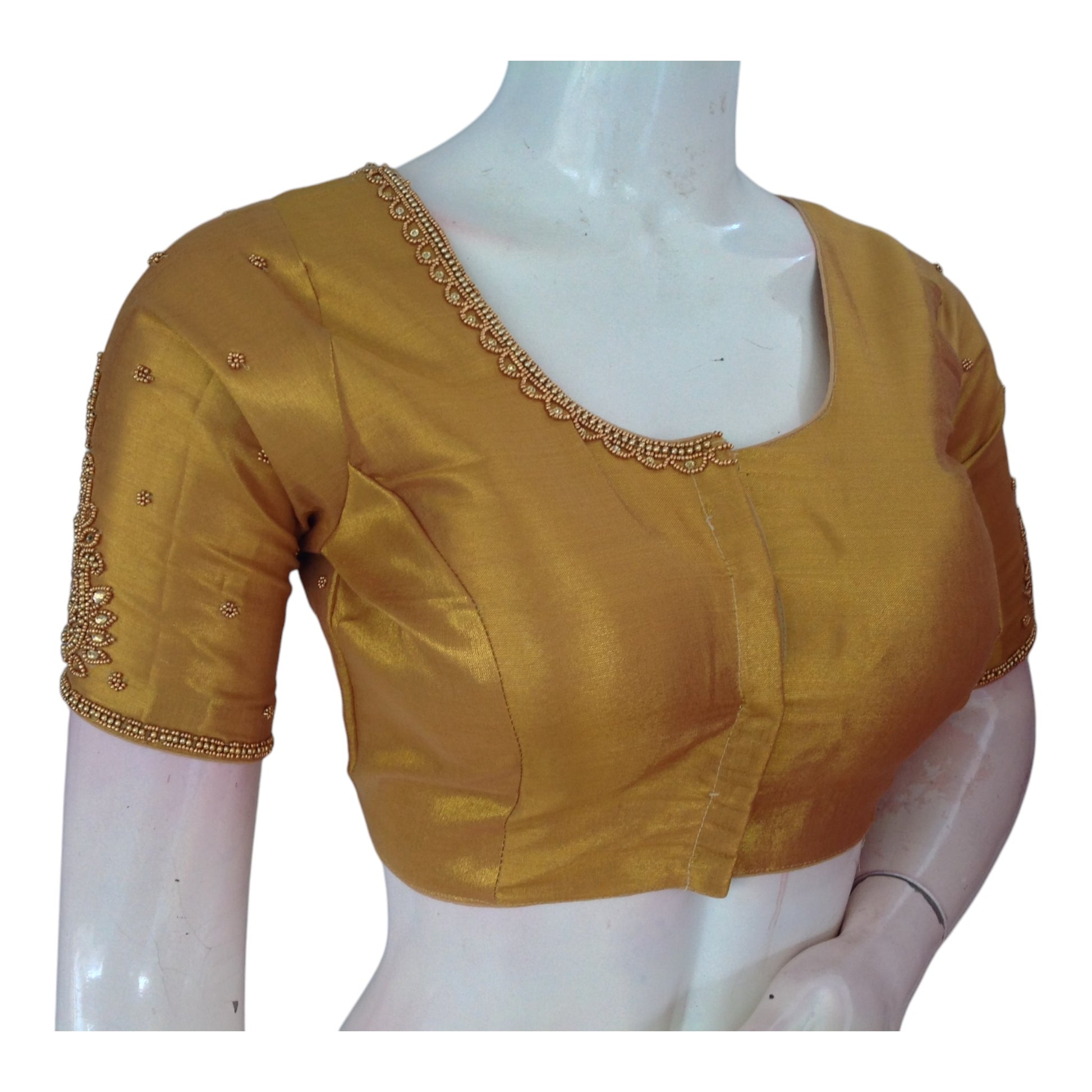 Luxurious Tissue Gold Silk Saree Blouse with Detailed Aari Handwork